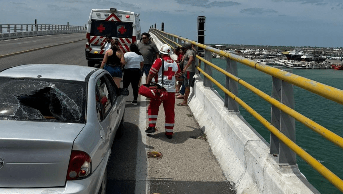 El suceso ocurrió en medio de una jornada habitual de mediodía, en la que varios vehículos acuden o retornan del puerto de abrigo de la zona. Sin embargo, casi al llegar a la cúspide de este puente se escuchó un impacto violento, en el que una motociclista a bordo de una unidad con matrícula 61DMY4 presuntamente no guardó distancia con un carro de la marca Chevrolet tipo “Chevy” con placas de Yucatán ZBY-798-E.