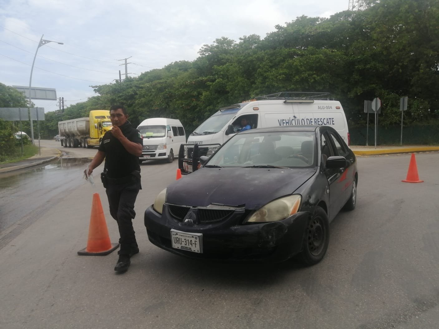 Ante la magnitud de automóviles y unidades del transporte público que circulan a toda hora por el área, una cuadrilla de agentes se encargó de aminorar el tráfico, mientras que otro grupo de uniformados de la dirección de seguridad pública y tránsito se ocuparon de salvaguardar la integridad de los involucrados, así como también de remover los vehículos en presencia del departamento de peritos de la misma DSPT.