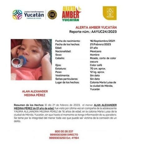 Tras el reporte de su desaparición, la Fiscalía General del Estado (FGE) de Yucatán emitió una doble Alerta Amber para localizar a los menores, quienes son madre e hijo.