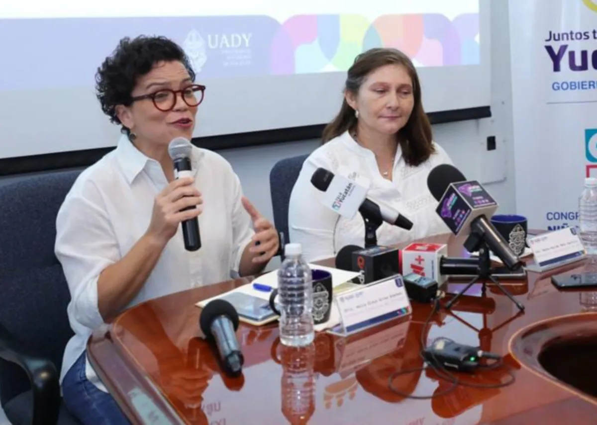 En ese marco, la secretaria ejecutiva del Sistema de Protección Integral de Niñas, Niños y Adolescentes de Yucatán (Sipinnay), María Elena Rivas Acevedo, y la responsable institucional y enlace de la Agenda de Niñez y Adolescencia por parte de la Universidad Autónoma de Yucatán (Uady), Reyna Faride Peña Castillo, presentaron el primer Congreso Internacional de Niñez y Adolescencia.