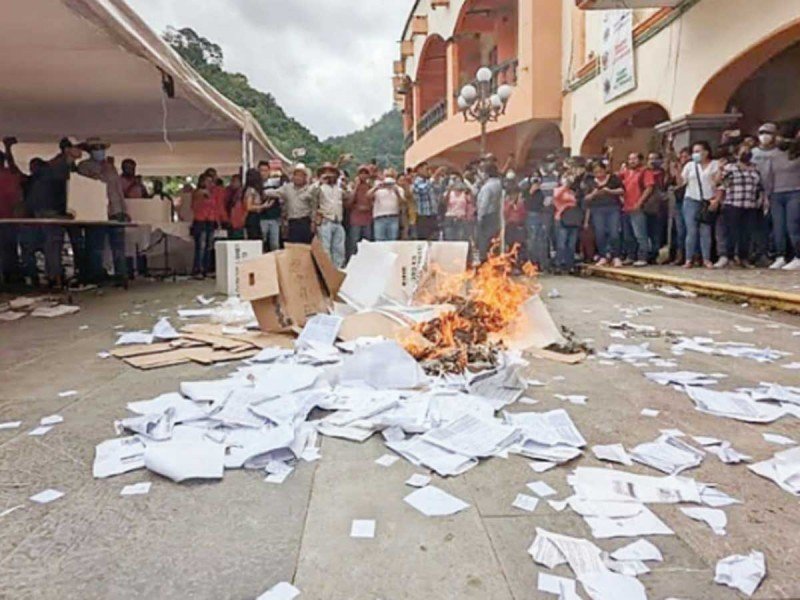 En una docena de municipios chiapanecos hubo riñas, que orillaron a cancelar el proceso debido a la quema de urnas y papelería.