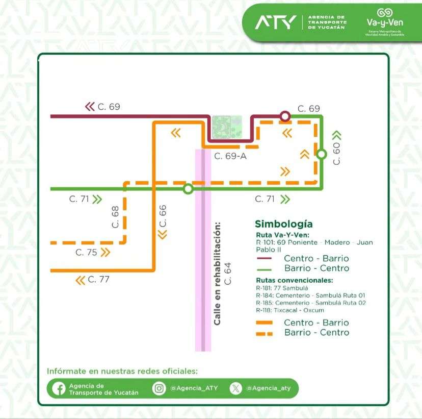 En cuanto al servicio convencional, también se verán afectados trayectos como la 181 (77 Sambulá), 184 (Cementerio-Sambulá Ruta 01), 185 (Cementerio-Sambulá Ruta 02) y la 118 (Tixcacal-Oxcum), los cuales ajustarán su circulación mientras se desarrollan las obras.