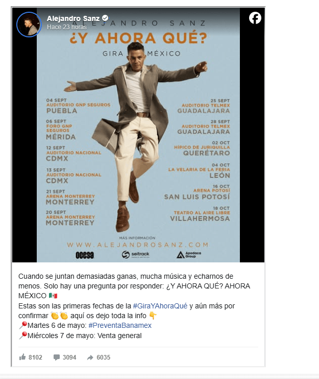 El reconocido cantautor español Alejandro Sanz incluirá a Mérida como parte de su próxima gira por México, titulada «¿Y ahora qué?».