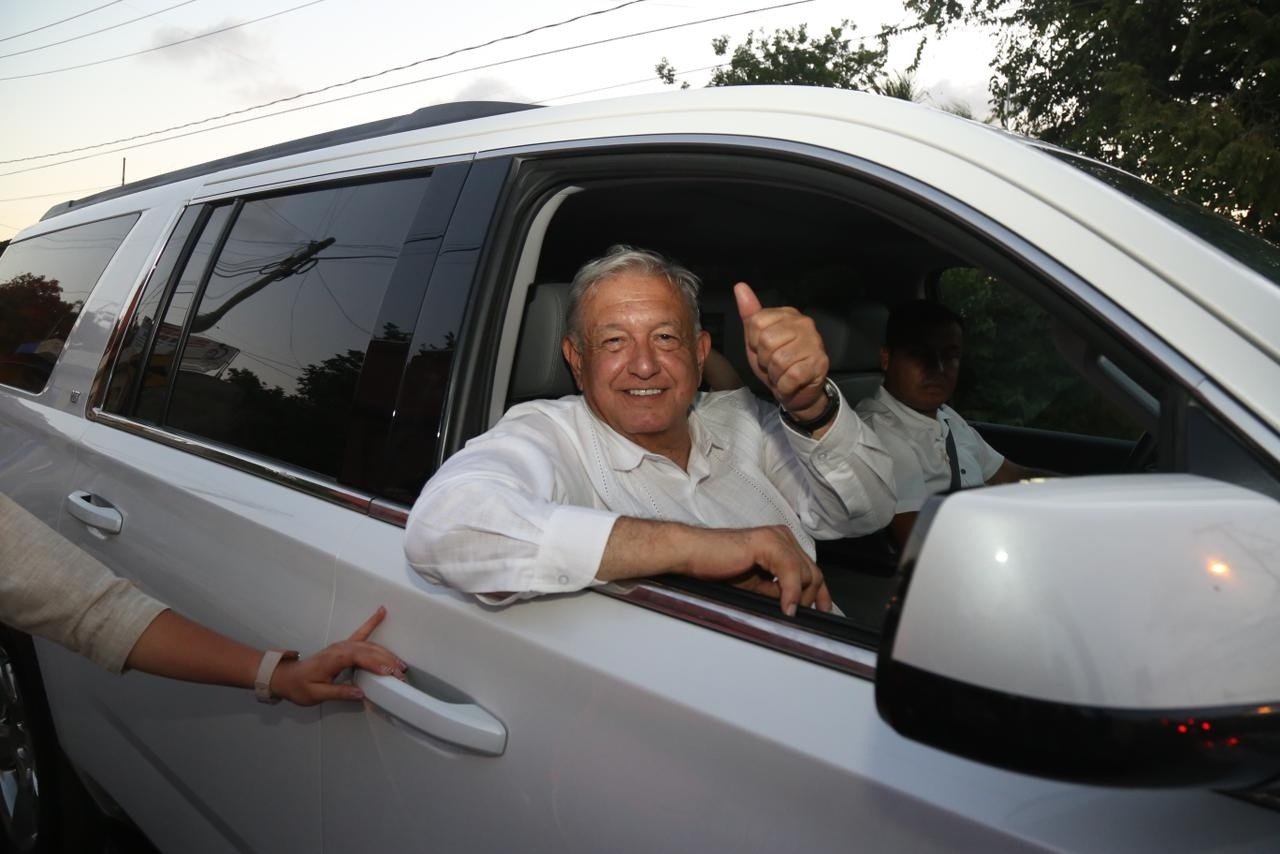 El presidente de la República, licenciado Andrés Manuel López Obrador llegó puntual a su cita quincenal con el Estado, para su acostumbrado recorrido de verificación de los trabajos que se realizan por el Tren Maya.