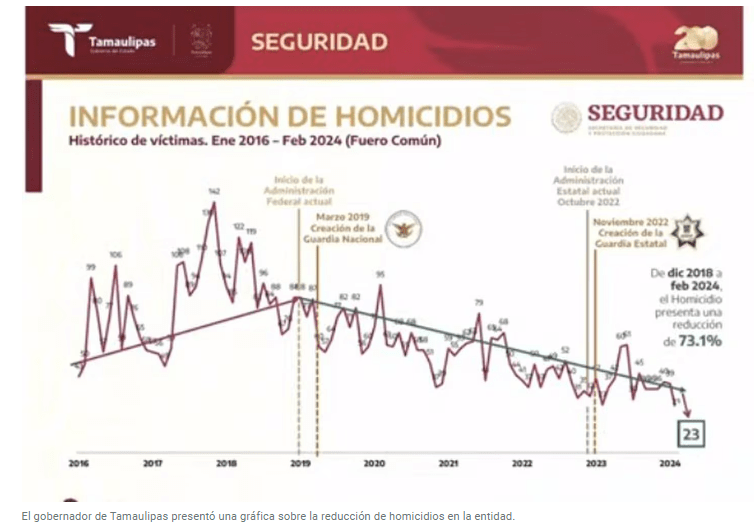 El gobernador de Tamaulipas, Américo Villarreal, presentó cifras de seguridad en cuanto a la reducción de homicidios.