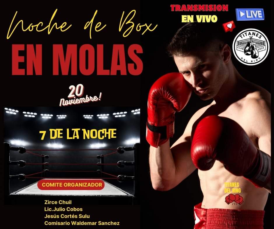 Los organizadores de «Titanes boxing club» informaron que el próximo lunes 20 de noviembre se llevará a cabo una pelea de box, en el municipio de Molas.
