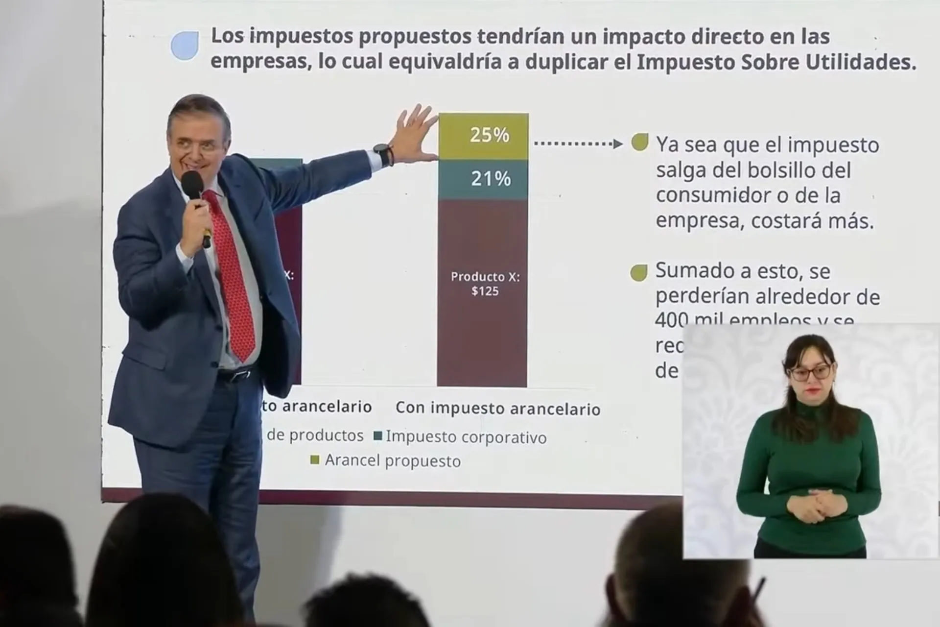 En la conferencia matutina de Palacio Nacional, Ebrard Casaubón destacó que dichos aranceles provocarían la pérdida de unos 400 mil empleos en EE.UU.