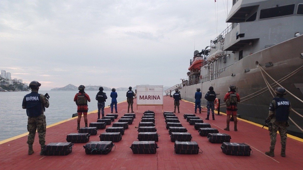Autoridades federales aseguraron más de una tonelada de cocaína frente a las costas de Guerrero.