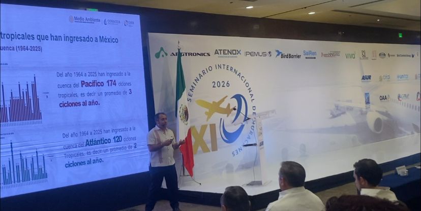 En el marco del Seminario de Huracanes organizado por ASUR, el gerente de climatología de la Comisión Nacional del Agua, Rafael Trejo, informó que en 2026 podrían impactar hasta cinco huracanes en México, de acuerdo con estimaciones preliminares del Servicio Meteorológico Nacional.