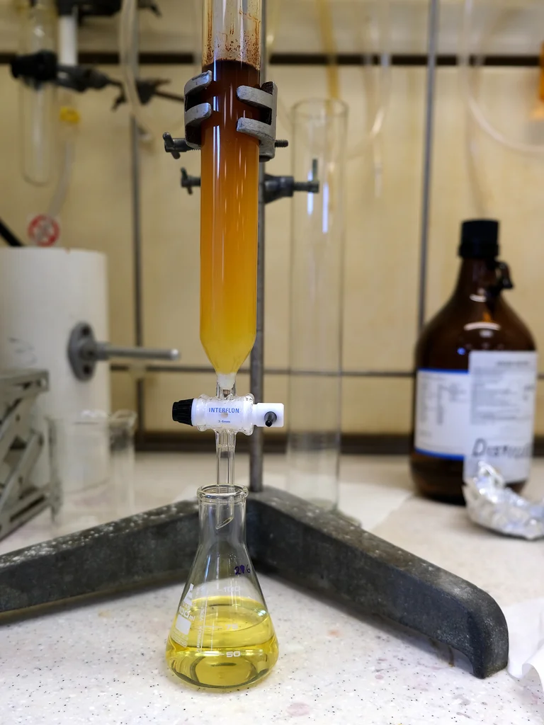 Su equipo está trabajando para acortar la vida media de la MDMA (el tiempo que la droga hace efecto) y eliminar una propiedad adictiva. En el laboratorio, se pude ver cómo un químico vierte con cuidado una solución clara en un matraz de una serie de tubos de ensayo. En el interior, cada uno contiene un análogo de la droga. Cerca, un colega maneja un pequeño frasco lleno de precursor amarillo cristalino, mientras que otro apaga un artilugio con una esfera giratoria.