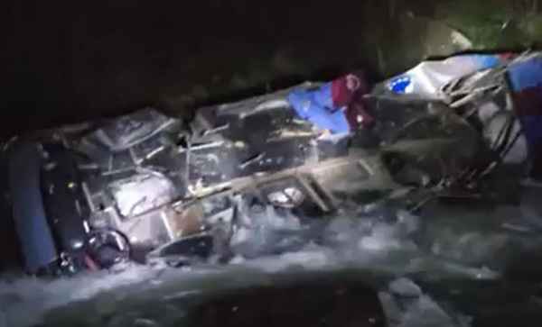 El autobús terminó al borde de las caudalosas aguas del río Sendamal, según imágenes difundidas en las redes sociales.