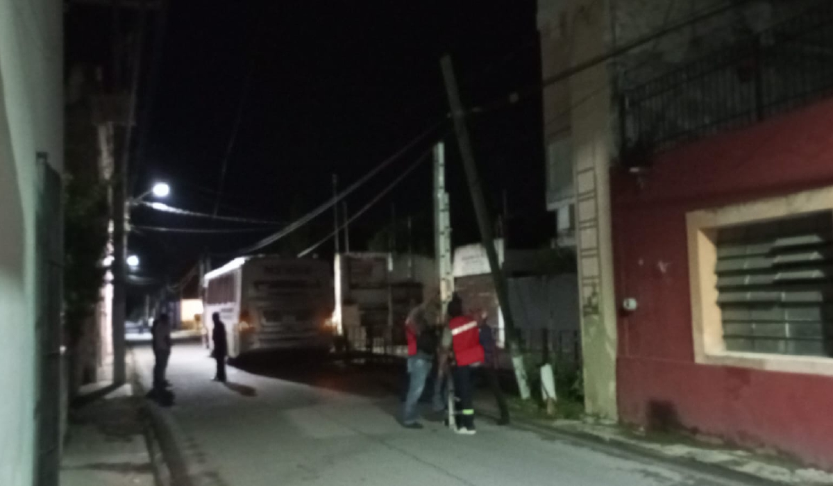 Tras el impacto, el poste se rompió de su base y los cables que mantenía de pie quedaron cerca del suelo.