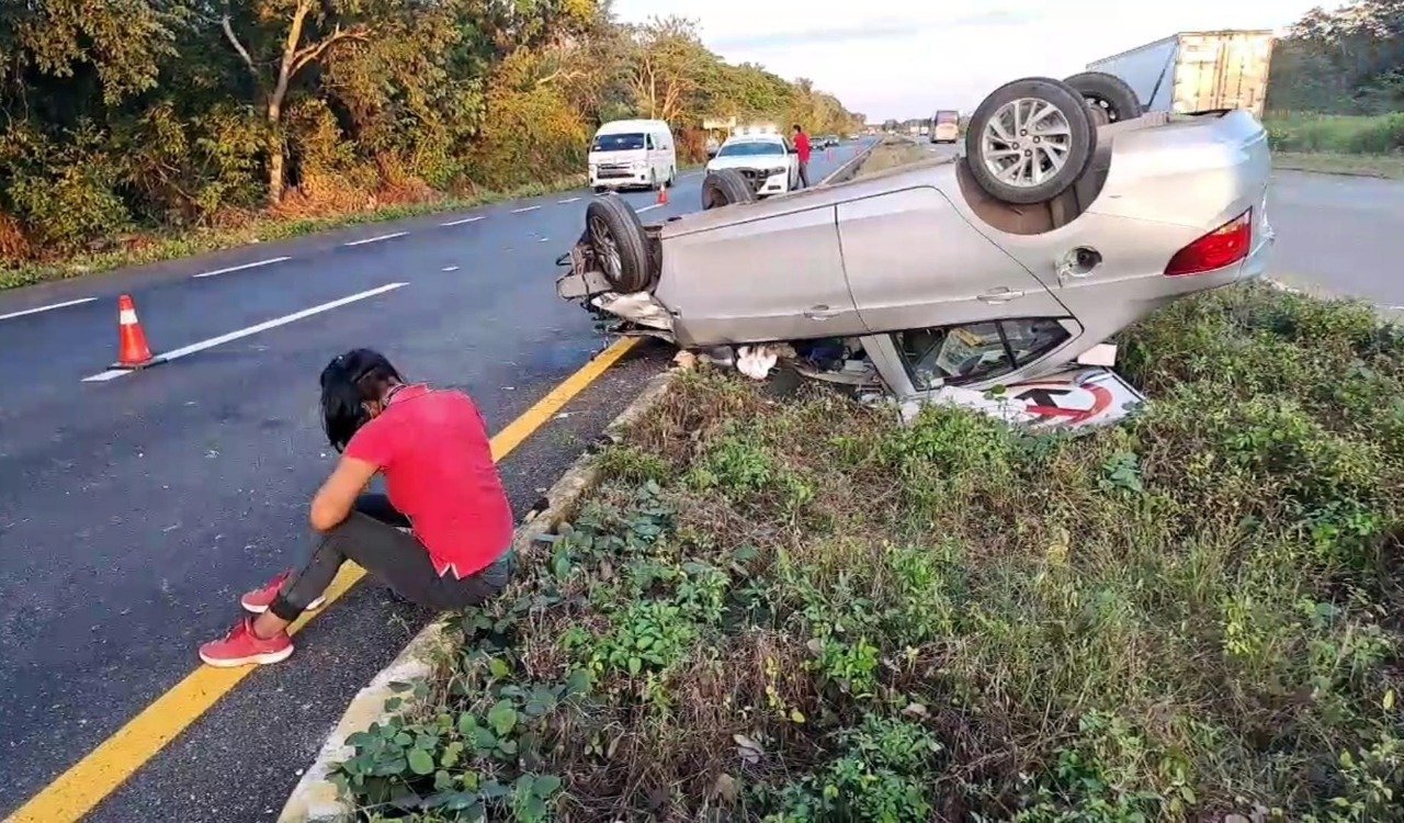Un Chevrolet Aveo volcó en el kilómetro 28 de la vía Mérida – Valladolid; aún se desconocen los motivos del accidente