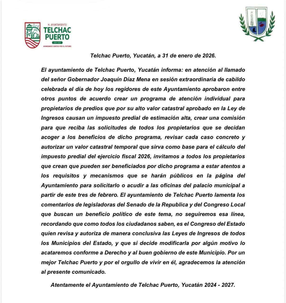 Finalmente, el Ayuntamiento reiteró que acatará cualquier modificación conforme a Derecho y al buen gobierno del municipio, agradeciendo la atención al presente comunicado.