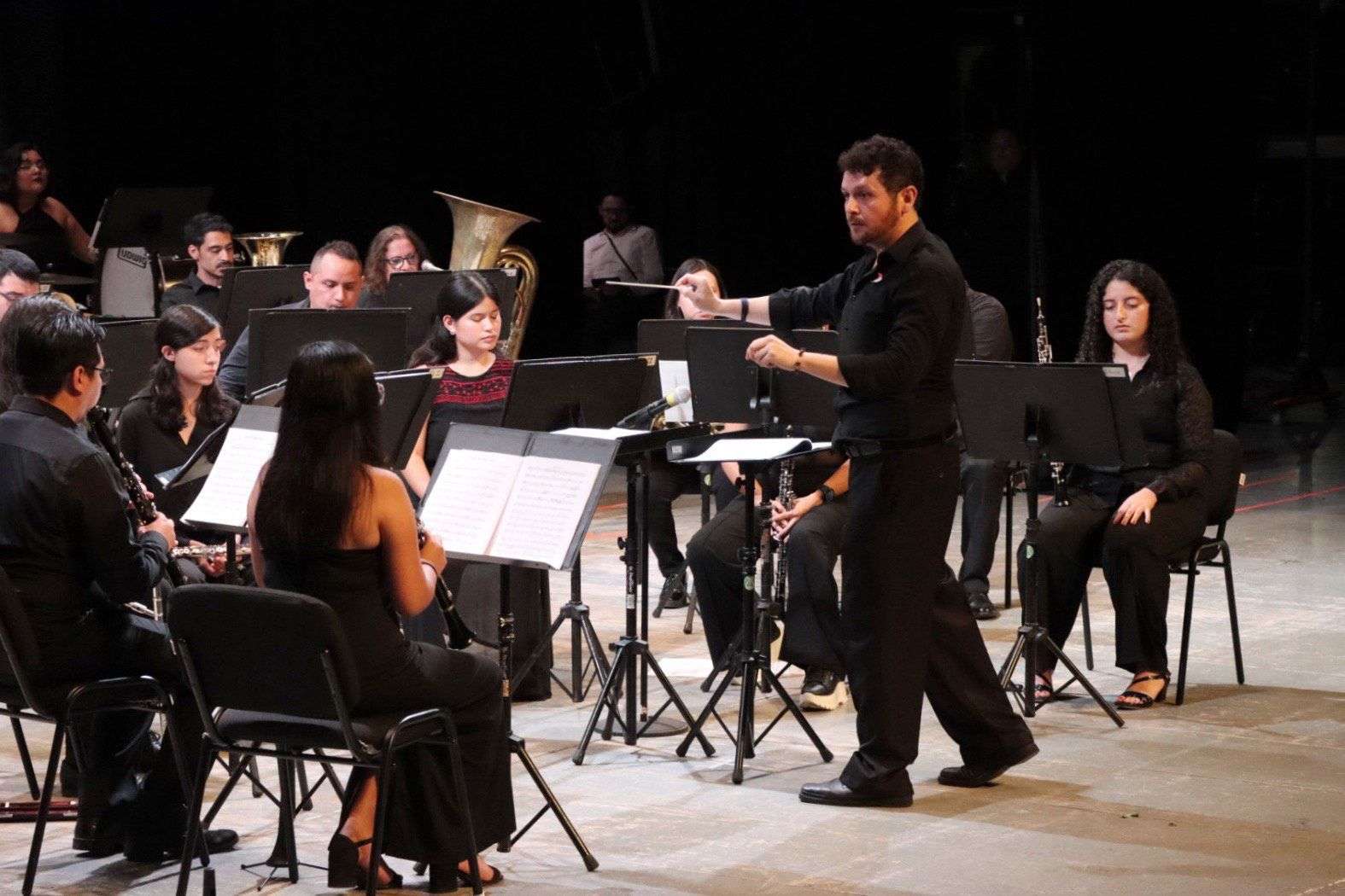 La Banda Sinfónica de Yucatán “Luis Luna Guarneros” resonó anoche en el teatro Armando Manzanero, mostrando el talento de sus jóvenes integrantes bajo la batuta de cuatro destacados directores de orquesta del sureste del país.