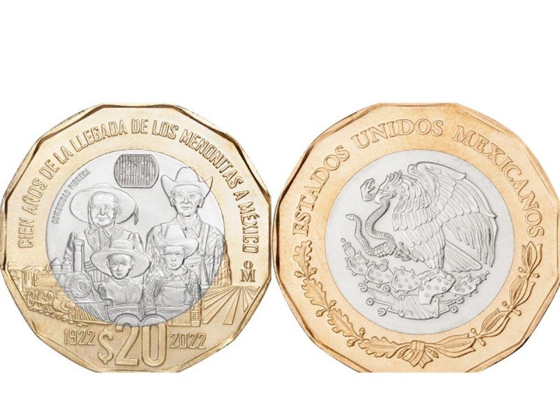 El Banco de México (Banxico) puso en circulación una moneda de 20 pesos, conmemorativa de los cien años de la llegada de los menonitas a México.