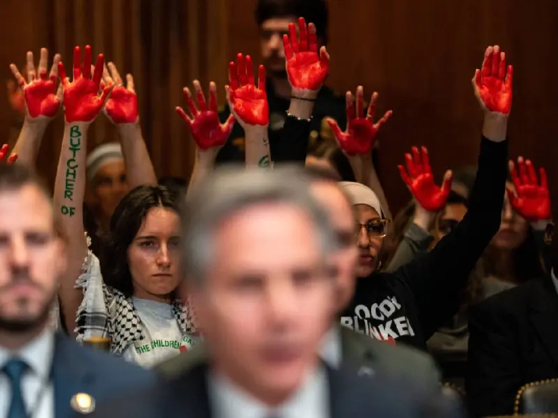 La sesión de Blinken ante la comisión del Senado se vio brevemente interrumpida este martes por manifestantes que acusaron a gritos al secretario de Estado de ser un «criminal de guerra» por su apoyo a Israel, antes de ser escoltados fuera de la sala por la policía.