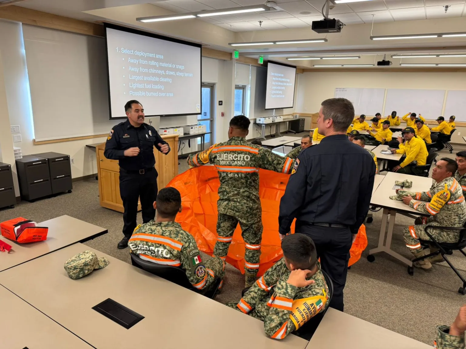Curtis Rhodes, portavoz de Cal Fire, informó que el personal mexicano realizó estudios en aula sobre los aspectos de seguridad respecto a la lucha contra incendios forestales y realizaron prácticas relacionadas con situaciones en las que podrían quedar atrapados por el fuego.