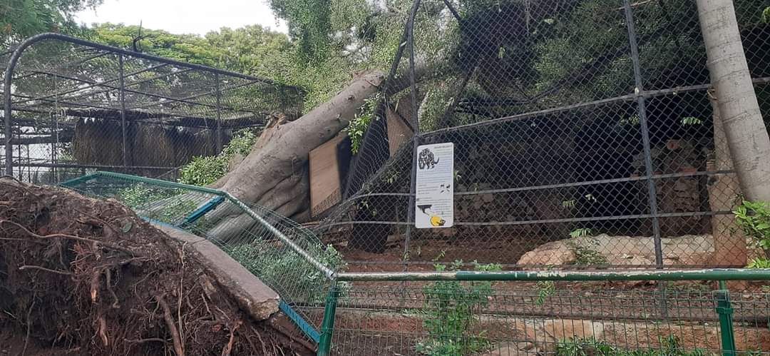 En la página de Facebook de Parques Zoológicos de Mérida: Centenario y Animaya se confirmó la caída del viejo árbol y se dijo que activaron un protocolo de seguridad para garantizar el bienestar de los felinos y de los visitantes.