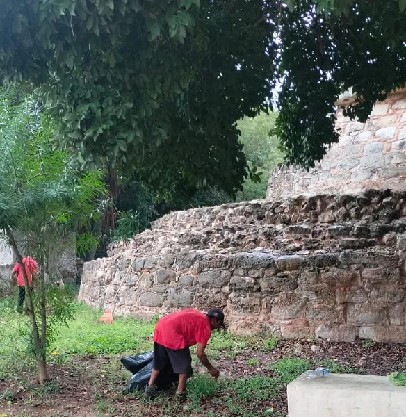 Esta semana, varios detenidos recolectaron basura en la zona arqueológica de Kinich Kakmó, en el centro de Izamal.
