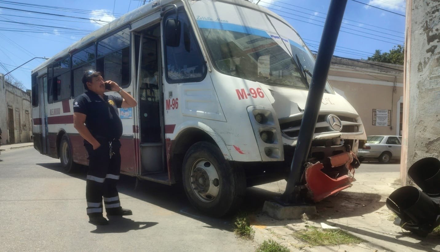 Un aparatoso accidente de tránsito ocasionó un operador de un autobús de la Alianza de Camioneros de Yucatán (ACY), ya que al quedarse sin frenos desprendió de su base un semáforo, por lo que los daños materiales ascienden a más de 50 mil pesos.