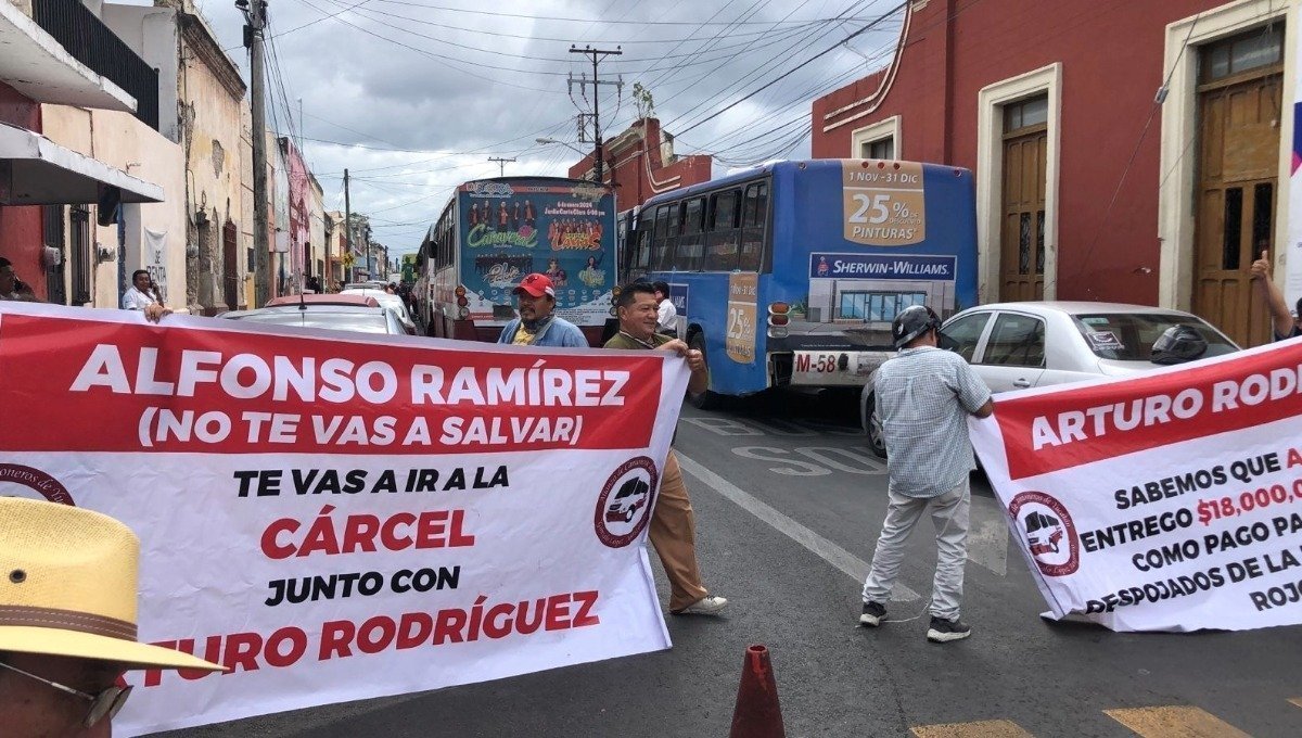 Este lunes, camioneros de la Alianza de Yucatán tomaron las calles de Mérida para exigir a los directivos su liquidación conforme a ley