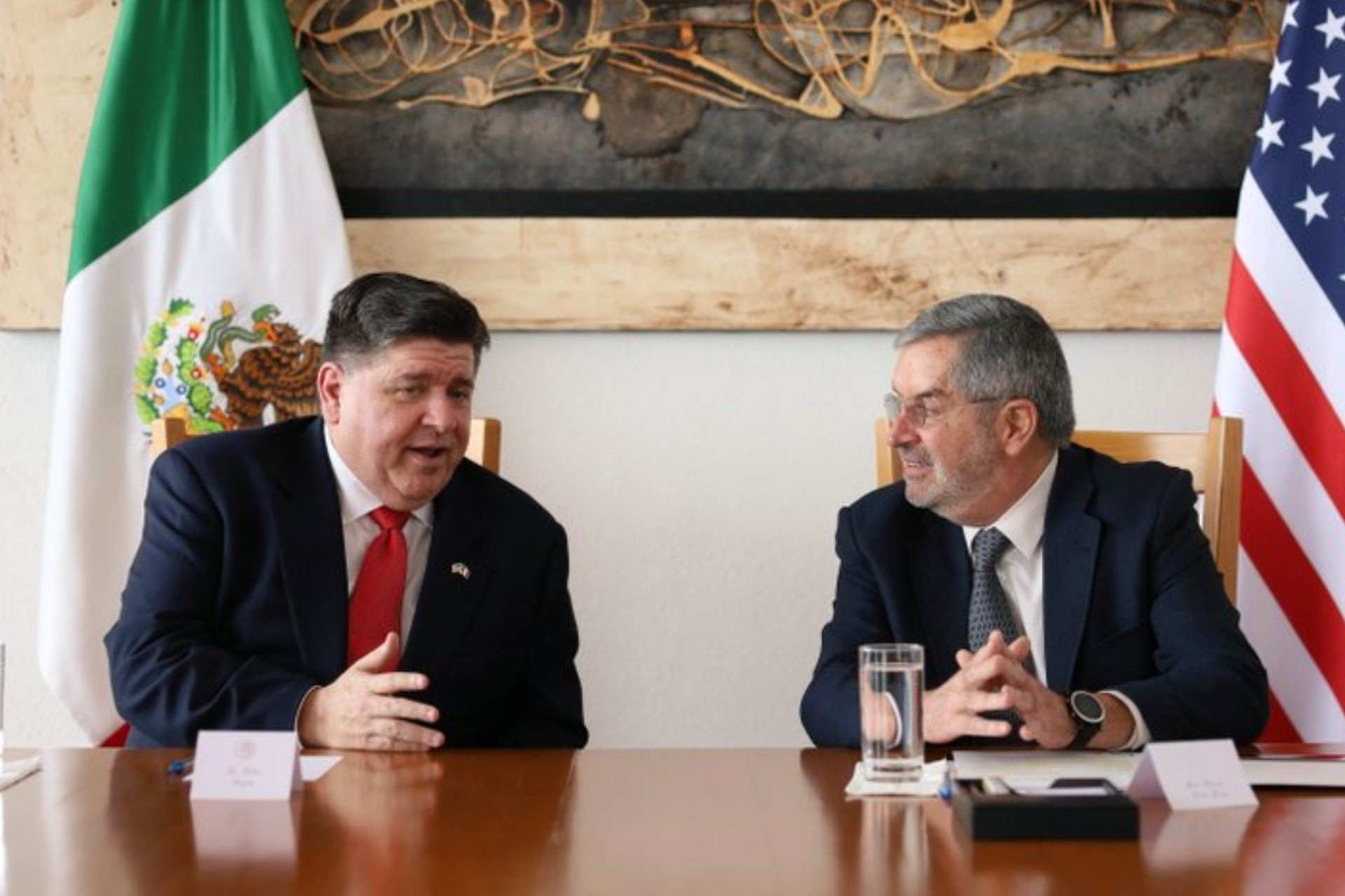 El canciller Juan Ramón de la Fuente y el gobernador de Illinois, JB Pritzker, tuvieron un encuentro este 1 de abril