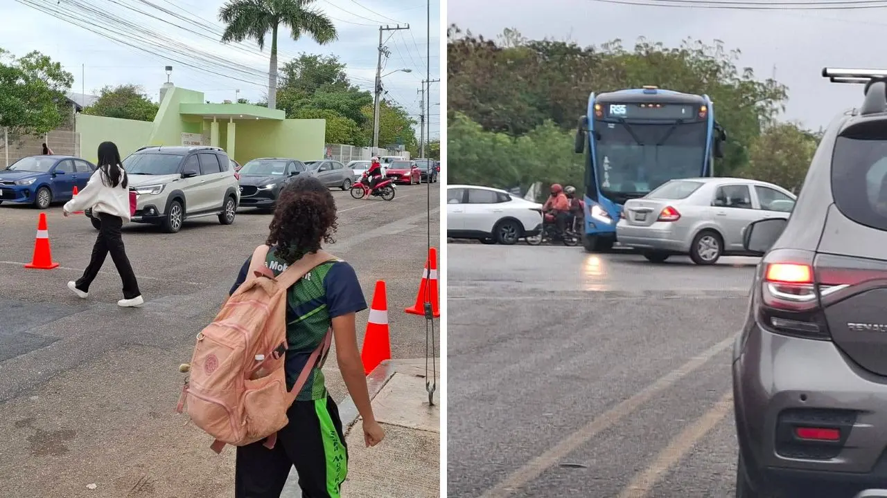 Intenso tráfico, cuellos de botella y autobuses de pasaje en su máxima capacidad fueron algunos de los reportes generados en Ciudad Caucel tras el ajuste de horario para entrar a las escuelas públicas de Mérida y que coincidió con la entrada de muchas personas a sus centros de trabajo.