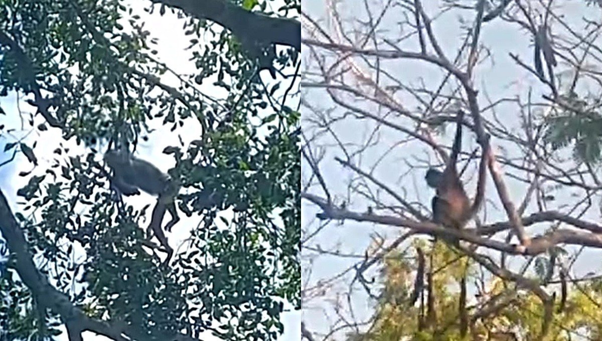 🐵 #Yucatán | Vecinos de Dzidzantún han colocado agua cerca de los árboles mientras los monos buscan alimento en Dzidzantún.