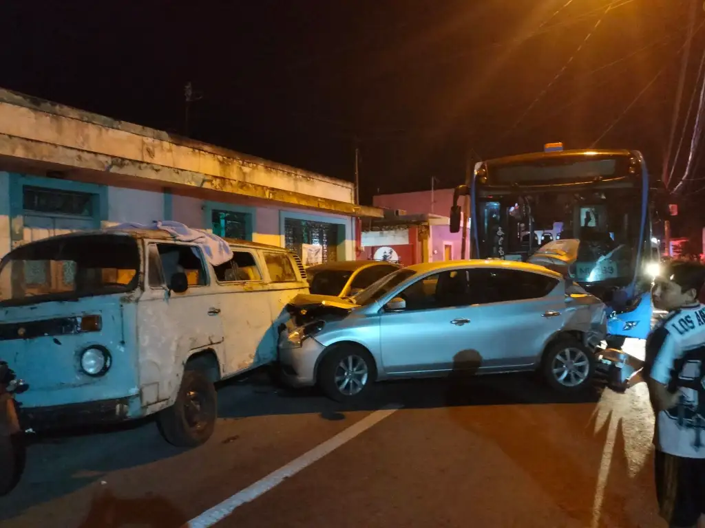 El percance dejó una decena de lesionados y un perro muerto, además de daños en dos motocicletas y nueve vehículos incluidos el camión de pasajeros y el Aveo. El autobús circulaba con preferencia al momento del choque.