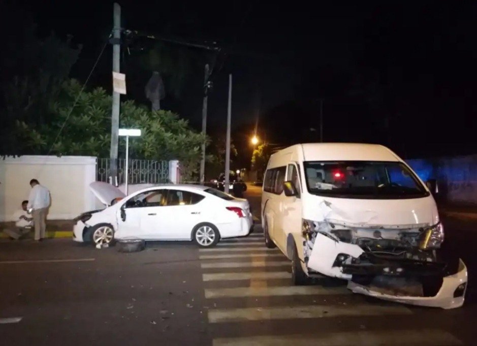 Eran cerca de las 6 de la noche cuando el chofer de una combi del Aeropuerto conducía por la calle 28, pero al llegar al cruce con la avenida, no logró ver el disco de alto por lo que se impactó contra un automóvil Golf que iba por la avenida.