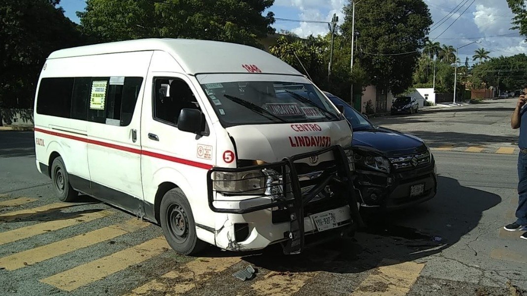 El choque entre una combi de transporte público con una camioneta que no respetó la señal de alto en la avenida Colón con calle 16 de la colonia García Ginerés, en Mérida, dejó dos lesionados.