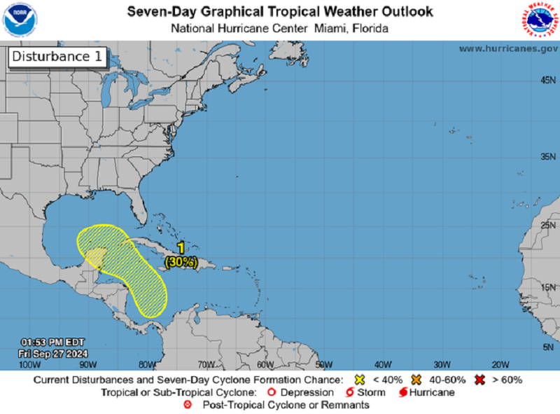 Se incrementa a 30 % la probabilidad de formación ciclónica en el Caribe para los próximos días.