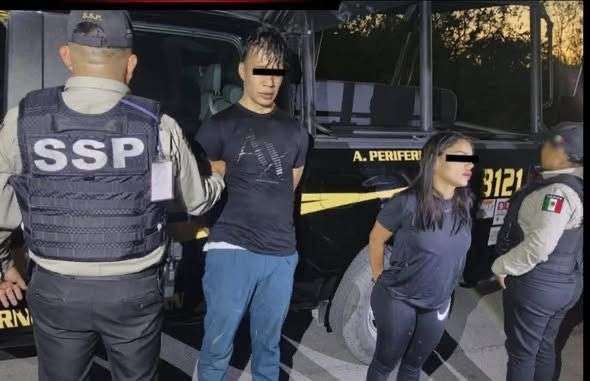 Las personas aseguradas fueron identificadas como una mujer de 29 años y un hombre de 35 años, ambos de nacionalidad extranjera, quienes fueron puestos a disposición de la autoridad competente.