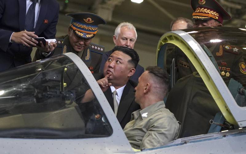 El líder de Corea del Norte, Kim Jong Un, observó este viernes a la cabina del avión de combate ruso más avanzado durante su visita a una fábrica de aviones en su viaje a Rusia, que aumentó la preocupación acerca de los acuerdos armamentísticos entre las dos naciones.
