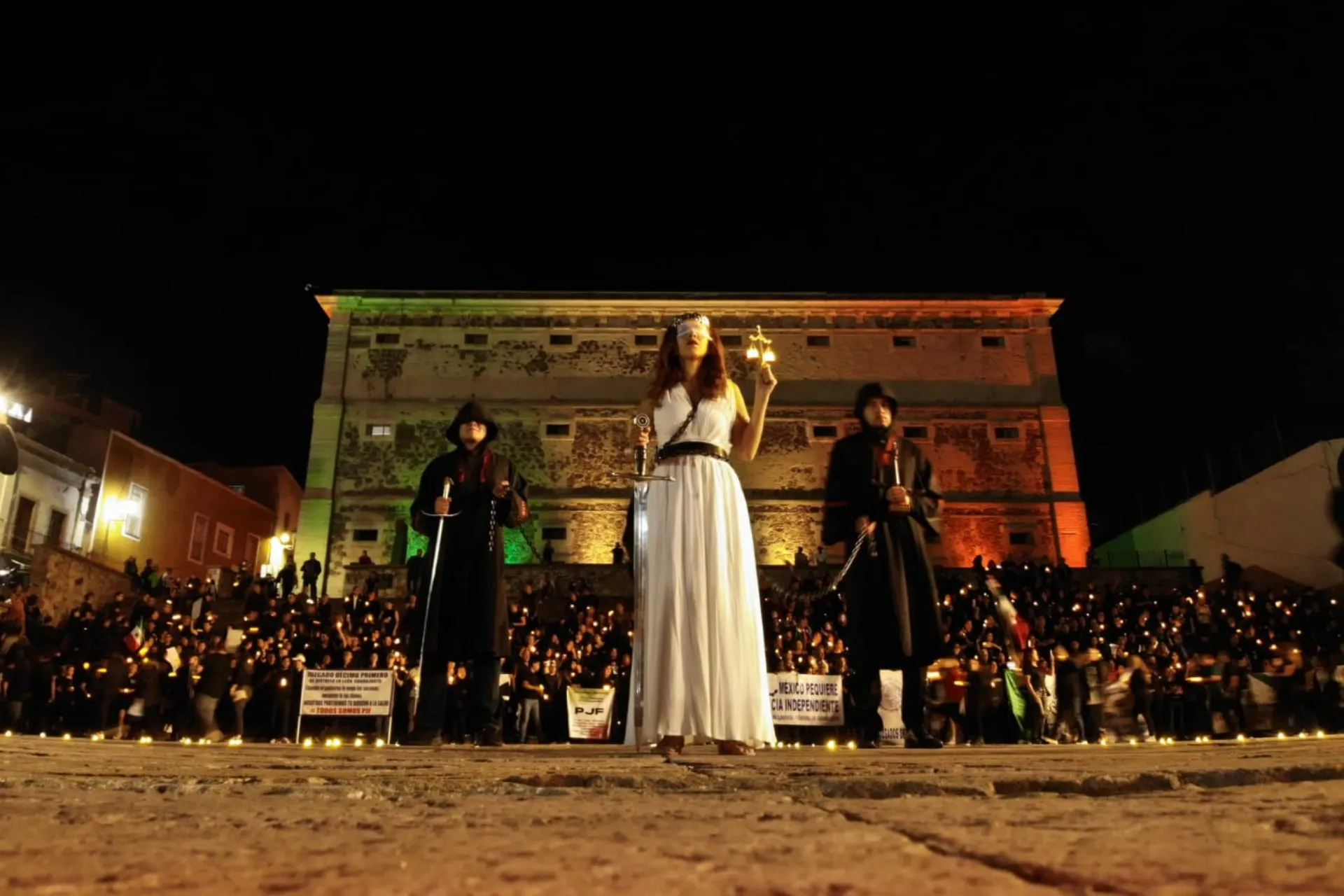 El acto culminó en el icónico edificio de la Alhóndiga de Granaditas, donde los manifestantes iluminaron dicho espacio con veladoras.