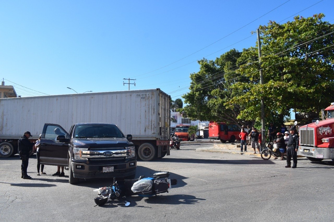 El percance ocurrió alrededor de las tres de la tarde de este miércoles cuando Cristina Ek Gutiérrez de 38 años de edad con su acompañante consanguínea, manejaba sobre la calle 82 en vía preferencial su vehículo tipo King Moto D125LT son placas de circulación del estado 61DMS4, pero al cruzar con la intersección de la calle 31 sufrieron una embestida.