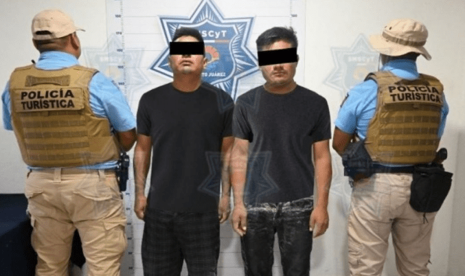 Agentes de la Policía Turística ayer detuvieron a Mateo “N”, de 35 años de edad, y José “N”, de 36 años. Ambos fueron turnados a la Fiscalía General del Estado, acusados del delito de lesiones.
