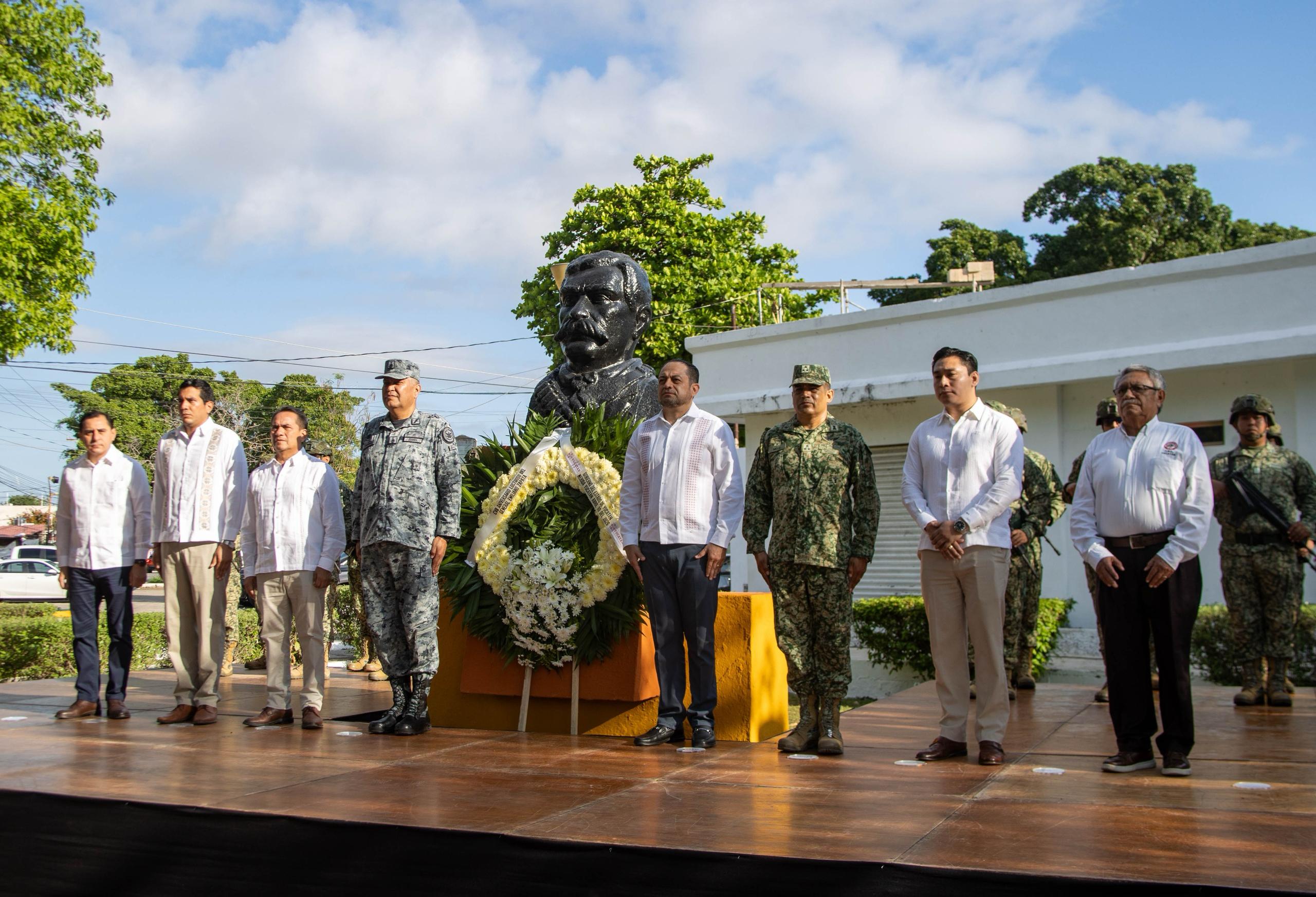 El secretario general de Gobierno, Omar Pérez Avilés, asistió en representación del Gobernador Joaquín Díaz Mena al acto cívico en honor del líder revolucionario._