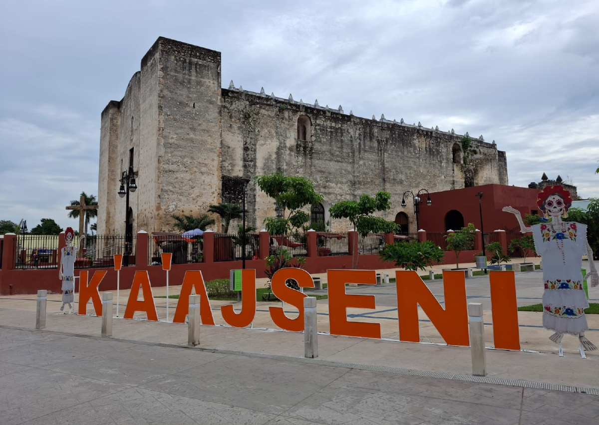 Adicional a esta palabra en lengua maya, hay una en español “Recuérdame” en el costado poniente del parque, junto a las estelas mayas que se conjugan con este decorado alusivo a estas fechas de Hanal Pixán.
