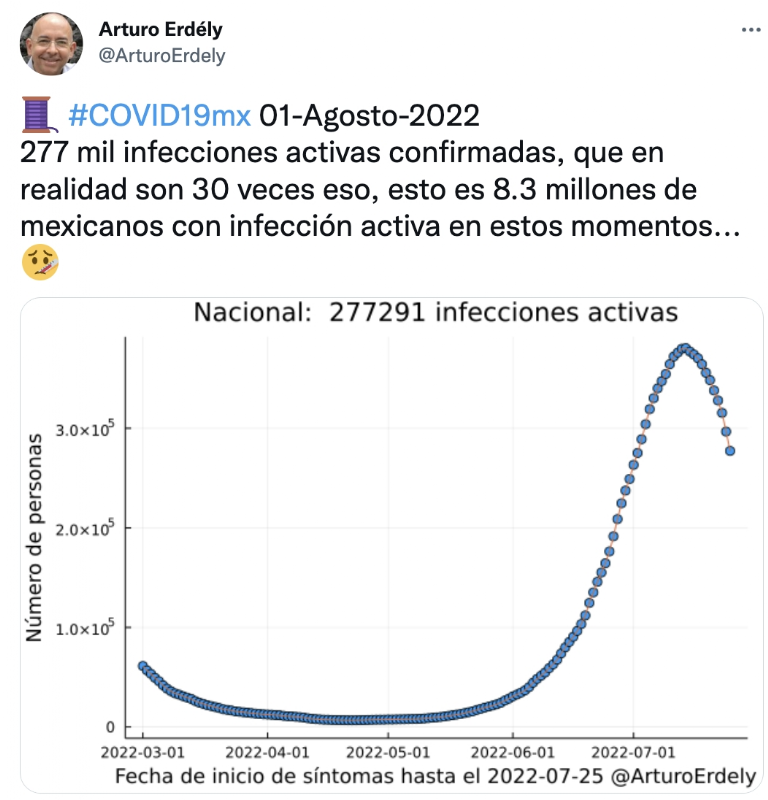 Durante los últimos meses ha habido un aumento de casos relacionados al virus. La subvariante de Ómicron BA.5 es la que más casos tiene en el mundo y la que domina en México, así lo aseguró el doctor Alejandro Macías; sin embargo, aseguró que la caída en la curva de infecciones es reversible en el país.