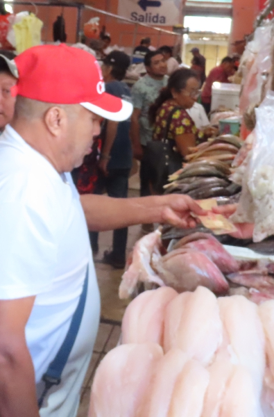 Abarrotados están los puestos de mariscos en el mercado Lucas de Gálvez, donde desde muy temprano las personas acuden esperando alcanzar pescado entero o para empanizar, y por momentos se hacen largas filas en los locales.