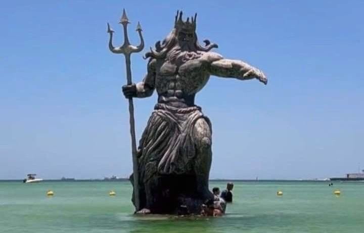 A lo largo de algunos minutos, la “influencer” habla de las altas temperaturas que se presentaron en la región durante la temporada de sequías, y menciona que fue justo al final de este período que se instaló una estatua de Poseidón, dios griego del mar, en las playas del puerto de Progreso.