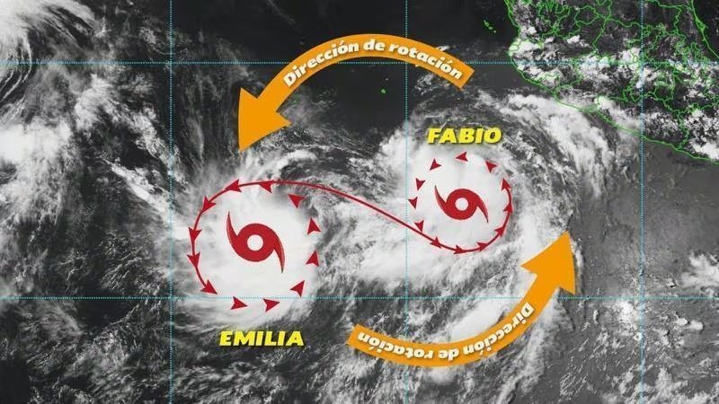 Según Conagua las tormentas tropicales activas y cercanas al territorio nacional son Emilia y Fabio, las cuales cumplen con las características del efecto Fujiwhara.