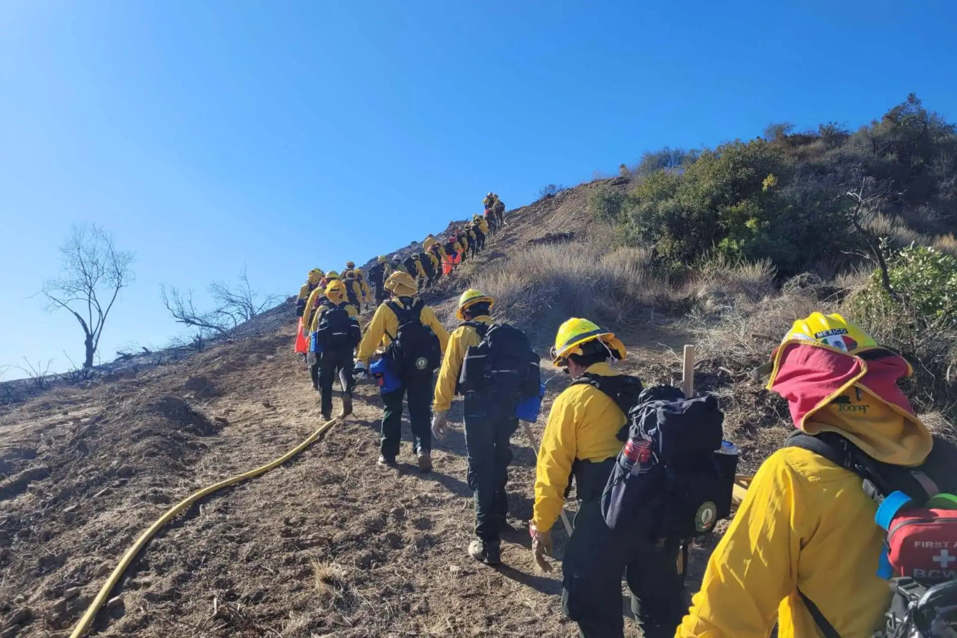 Los 72 mexicanos que actualmente se encuentran en Los Ángeles son parte de la primera brigada extranjera en llegar a combatir por tierra el fuego.