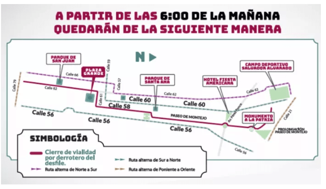 Se anunció que el desfile iniciará desde el Monumento a la Patria en Paseo de Montejo, pasando por la Plaza Grande de Mérida y finalizará en el Parque de San Juan.