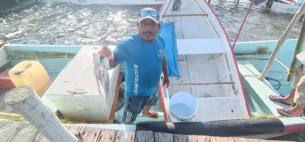 Añade que para salir de la temporada lo que está empleando en su caso son otras alternativas como la compra de pescado con todos los permisionarios al grado que en un día logra recaudar entre 400 y 500 kilos del producto con lo que solventa la pesca del día.
