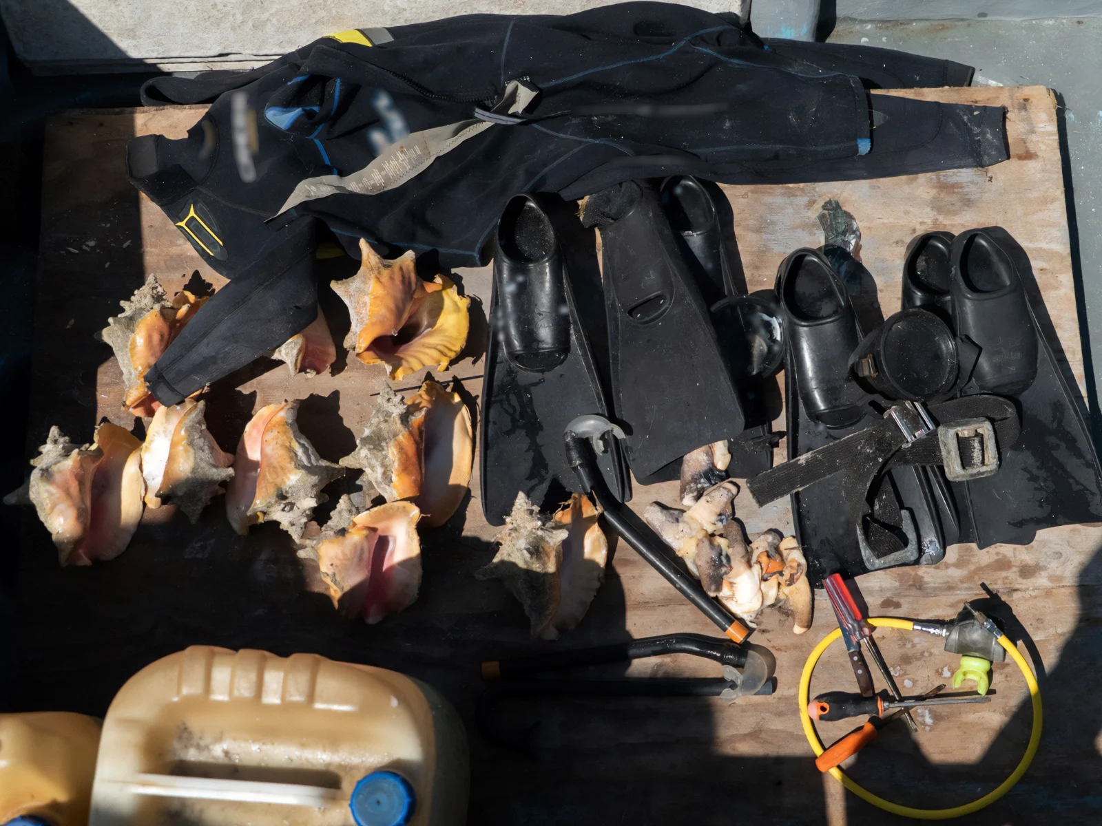 Durante el operativo, realizado el 4 de marzo, se detectó una embarcación furtiva, a la que se le dio alcance; se logró la detención de tres buzos. Al inspeccionarla, se encontraron artes de pesca prohibidas, tales como trajes para buceo, aletas, snorkel, visores, ganchos y utensilios para perforación, desarmadores y compresora; además de nueve conchas de caracol rosado y siete piezas de carne de caracol fresco, crudo eviscerado.