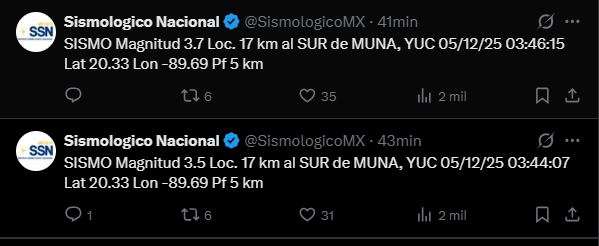 Anteriormente, el pasado mes de octubre se registró otro sismo en Ticul y fue confirmado por el Servicio Sismológico Nacional que determinó que su magnitud fue de 3.8 en la escala de Richter, con un epicentro ubicado a 13 km del municipio.