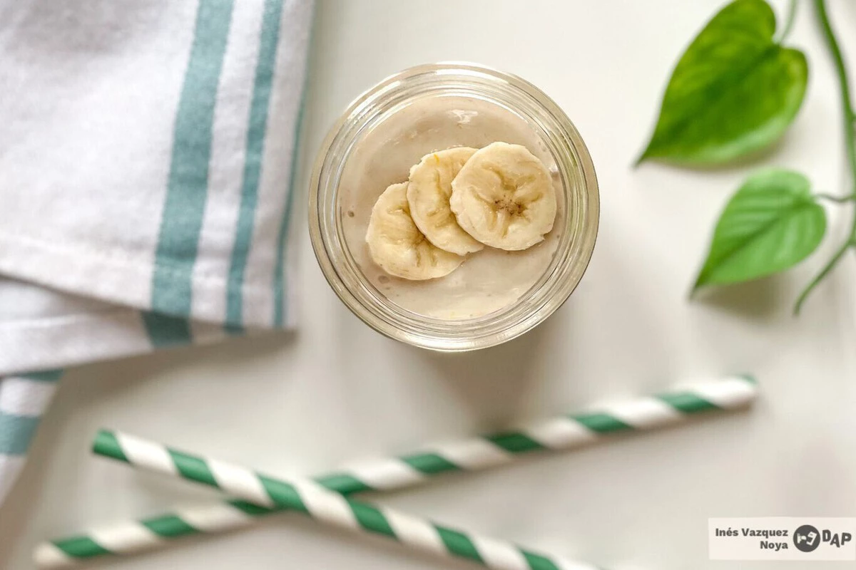 Si deseamos incorporar más hidratos podemos acompañar este lassi de plátano con avena en copos o algún otro cereal sin azúcar agregado; o bien podemos añadir fibra y poder saciante sumando unas semillas u otros frutos secos.